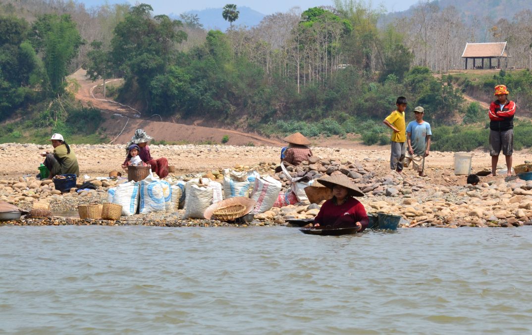 Unterwegs kommen wir an einer Gruppe Frauen vorbei, die an einer Sandbank im Mekong Gold waschen. Kaum vorzustellen, aber es scheint sich doch zumindest ein bisschen zu lohnen. Oder gehört das auch einfach zum von der Tourismusbehörde subventionierten Sightseeingprogramm?