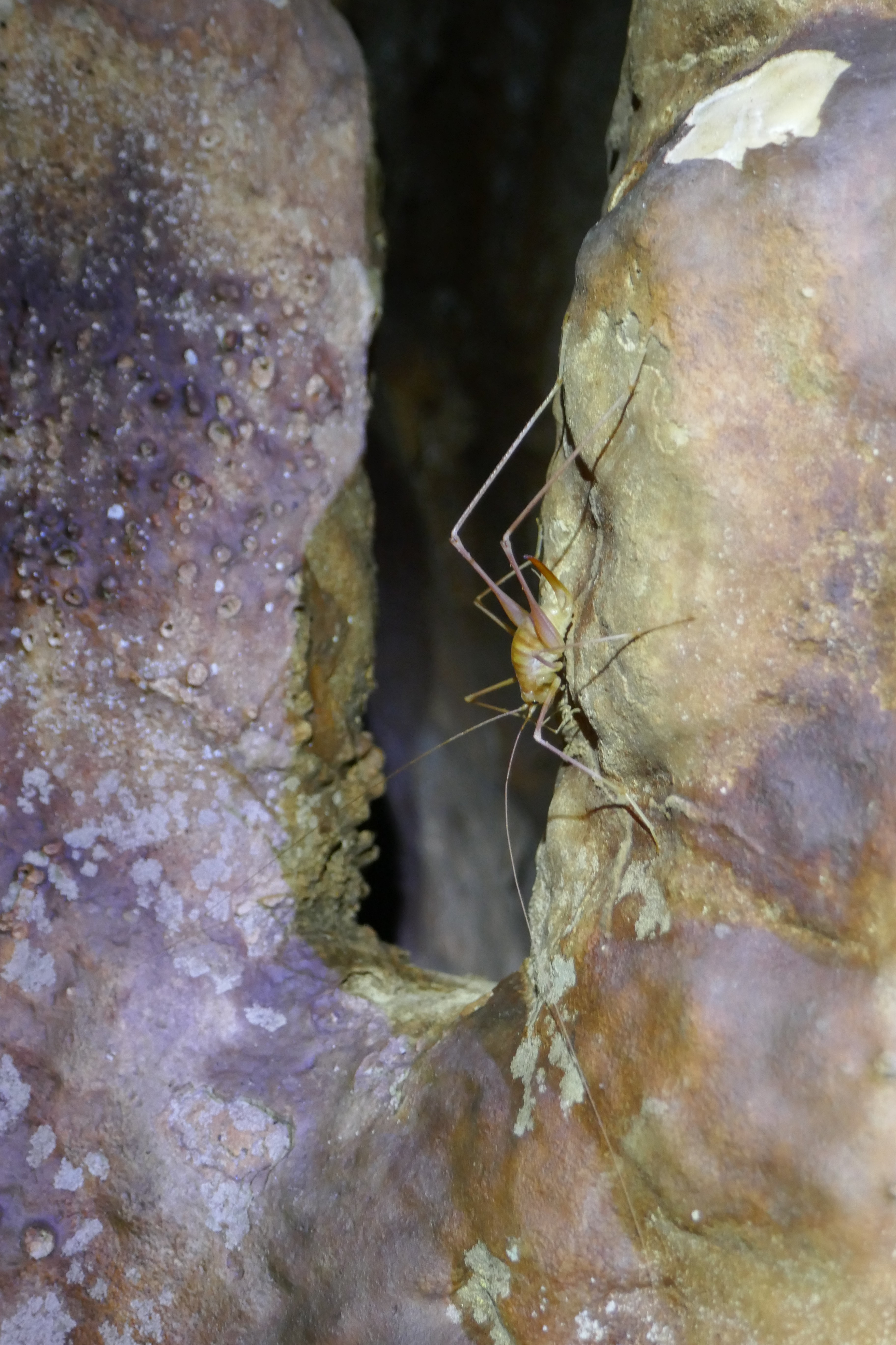 Bei meinem vierten Besuch auf der Insel sind wir diesmal in die Unterwelt abgestiegen, denn es gibt dort nicht nur überirdisch (Halb-)Höhlen mit Tropfsteinen, an denen die fortgeschrittenen Kletterer hängen, sondern auch richtige, unterirdische Höhlen. Und eine davon ist frei zugänglich: "Skalia Underworld". Man öffnet die Gittertür und steigt dann, mit Helm und Stirnlampe, eine Metallleiter in die Tiefe. Unten erwarten einen ein paar Seile, die einen über die rutschigen, abschüssigen Bereiche und durch einen engen und niedrigen Gang (ich bin rückwärts auf allen vieren durchgekrabbelt) leiten, eine weitere Leiter - und absolute Dunkelheit! Wirklich faszinierend und schön abenteuerlich, die Höhle alleine und nur mit dem Licht der Stirnlampen (und Kamerablitz) zu erkunden!