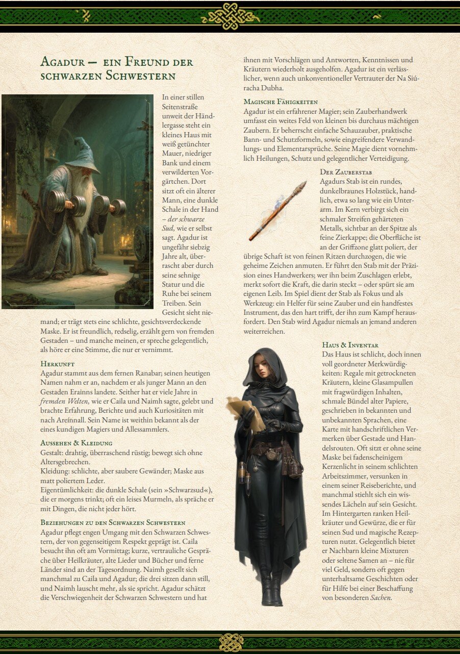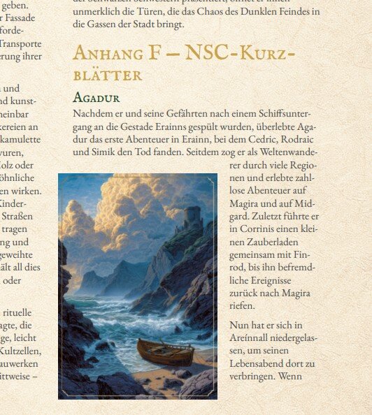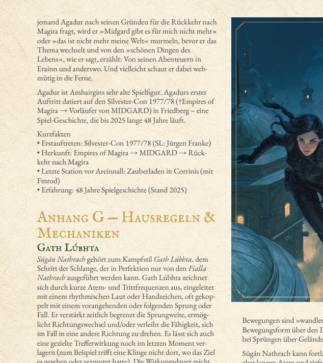 Agadur sagt tschüss! Es ist an der Zeit, um zu gehen und Midgard den Rücken zuzukehren. 1976 begann meine – Agadurs – Reise in das abenteuerliche Land der Rollenspiele. Damals brachte Josef (Ochmann) die weiße D&D-Box mit zum Fest der Fantasie nach Marburg. Wir durften sie anschauen, und wir taten das sehr gespannt (in der Rückschau liegt mir ein »und andächtig« auf der Zunge, um es etwas dramatischer zu machen). Es war neu für uns alle. So neu, dass auch ich die Box haben musste und sie bald bei Walter Luc Haas bestellte. Er besorgte damals alles, was jenseits des großen Teichs an Spielen gemacht wurde. Die Box – siehe das Foto – habe ich natürlich noch immer. 1977 dann ging es richtig los: beim Silvester-Con in Friedberg. Jürgen als Spielleiter. Uns Abenteurer, noch richtig grün hinter den Ohren, verschlug es nach einem Schiffsuntergang an die Gestade Erainns auf der Welt Magira. Das erste Abenteuer führte uns, wohin auch sonst, in einen mörderischen Dungeon, und nur ich überlebte die ganze Chose. Mein Charakterblatt von damals habe ich (wieder: natürlich) noch. Nach etlichen Abenteuern hier und da eröffnete ich gemeinsam mit Finrod (Jürgens Charakter) einen Zauberladen in Corrinis. Eines Tages wurde es still um mich, aber der Zauberladen warf all die Jahre genug ab, dass ich noch die eine oder andere Reise machen konnte. Jetzt ist wirkliche Ruhe eingekehrt, ich bin älter geworden, die Welt hat sich verändert. Mir ist zu Ohren gekommen, dass Midgard nicht mehr so ... nun ja, bewirtschaftet werden soll, wie es all die Jahre gewesen ist. Manches muss ich nicht verstehen. Was ich verstehe: Midgard wird müde. Und ich auch. Aber noch ist nicht aller Tage Abend, und so habe ich mich entschlossen - ach, kurz gesagt: back to the Roots! Zurück nach Magira! Was soll ich sagen, auf nicht wirklich verstehbare Weise habe ich mich jüngst auf die Reise zurück nach Magira gemacht. Von Magira nach Midgard nach Magira. Und da bin ich nun. Zwar nicht in Corrinis, und auch nicht in Cuanscadan (was aus Gründen wohl nicht überraschend gewesen wäre), sondern in Areínnall. Magira und Midgard sind zwei Welten, Erainn auf Magira ist kleiner, weniger Land, kein Corrinis mehr und kein Cuanscadan. In »Na Siúracha Dubha – Die Schwarzen Schwestern« tauche ich nun erstmals wieder auf Magira auf, ruhiger als früher, vielleicht sogar gelassener, jedenfalls entspannt und der Dinge harrend, die noch auf mich warten. Wie mir gesagt wurde, plant der, der das Charakterblatt hält, noch bisschen was mit Aréinnall, und ich soll zumindest als beratender Zauberer meine Hände mit im Spiel haben. Jedenfalls schließt sich ein Kreis, auf Magira, auf Midgard, auf der Erde: von D&D zu MIDGARD zu D&D. Die Zeit mit MIDGARD schließe ich hiermit ab. Ich logge mich gleich aus und lege meinen Account still, lösche ihn aber nicht, weil ich nicht weiß, ob meine Beiträge sonst noch meiner Person zugeordnet werden können. Wer mit mir Kontakt aufnehmen will, kann dies über unsere Seite www.coraniaid.de Im Fantasyverein FOLLOW bin ich weiterhin aktiv und leite die gleichnamige Simulationsgruppe. Ich bemühe mich, gemeinsam mit den anderen regelmäßig Schlangenschriften und andere Publikationen zu erstellen, die sich mit Erainn, den Coraniaid, der Welt Magira und – wie jüngst geschehen – mit Rollenspiel (nun aber: D&D 5e) beschäftigen.