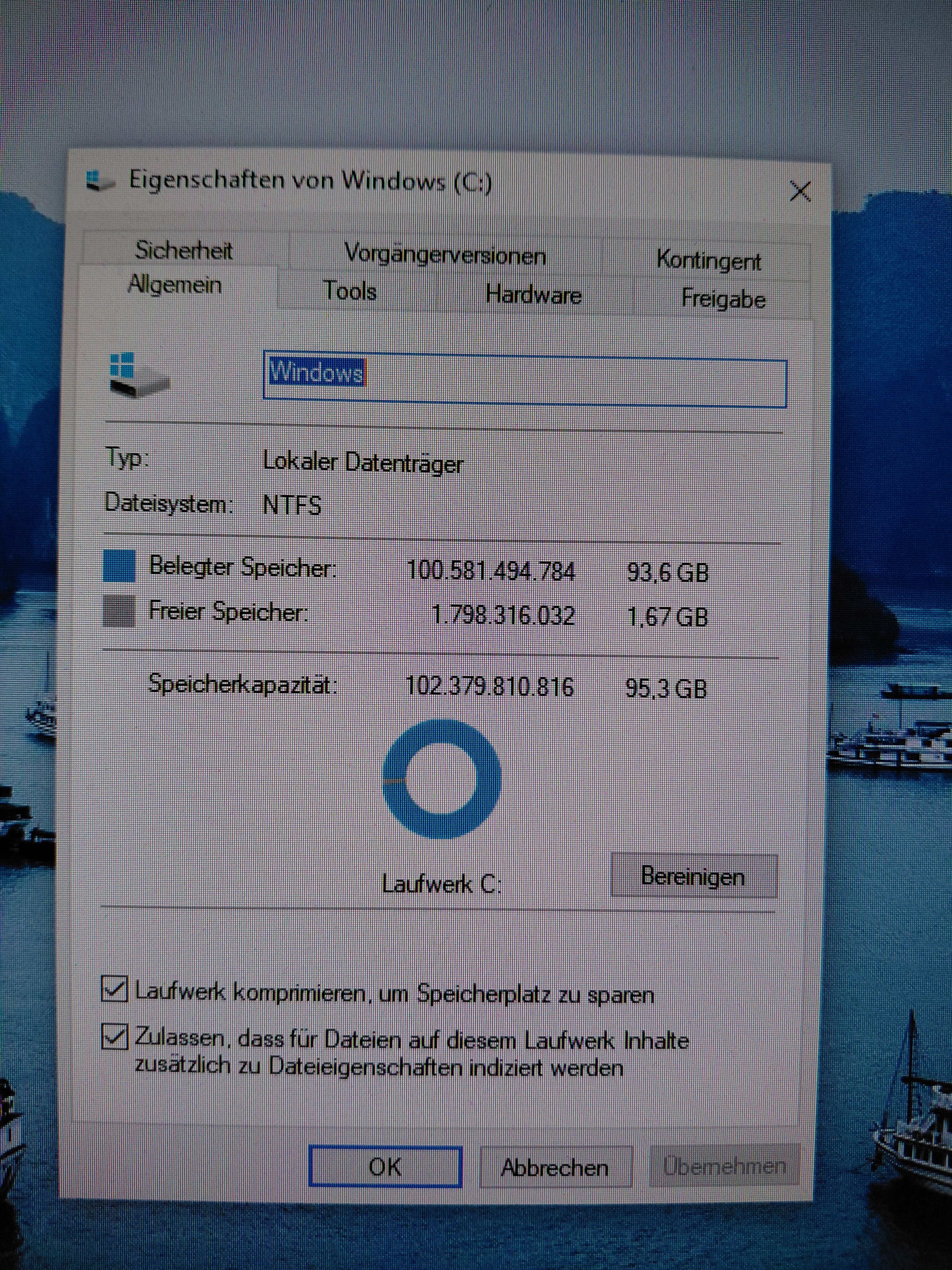 Vielleicht ist Laufwerk C: eine SSD, die sollte man nicht defragmentieren. Eine Bereinigung wäre drin. Ansonsten kannst du recht gut aufgeblähte Dateien zum Beispiel temporäre mit dem Tool Treesize Free aufspüren. Hier ein Link zur portablen Version. Download TreeSize Free Portable | JAM Software https://www.jam-software.de/treesize_free/portable.shtml