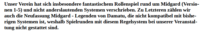 Und die alten Hasen können z.B. an Städte- und Stadtnamen leicht entscheiden, was M5 ist. Aber wenn jetzt jemand erst auf Damatu einsteigt, die Welt erst sukzessive entsteht und bekannt wird, wie soll der dann wissen, ob ein selten genanntes Land wie Medjis nach Midgard oder Damatu gehört? Ich sehe da zumindest eine Schwierigkeit oder eine Möglichkeit zur Irritation.