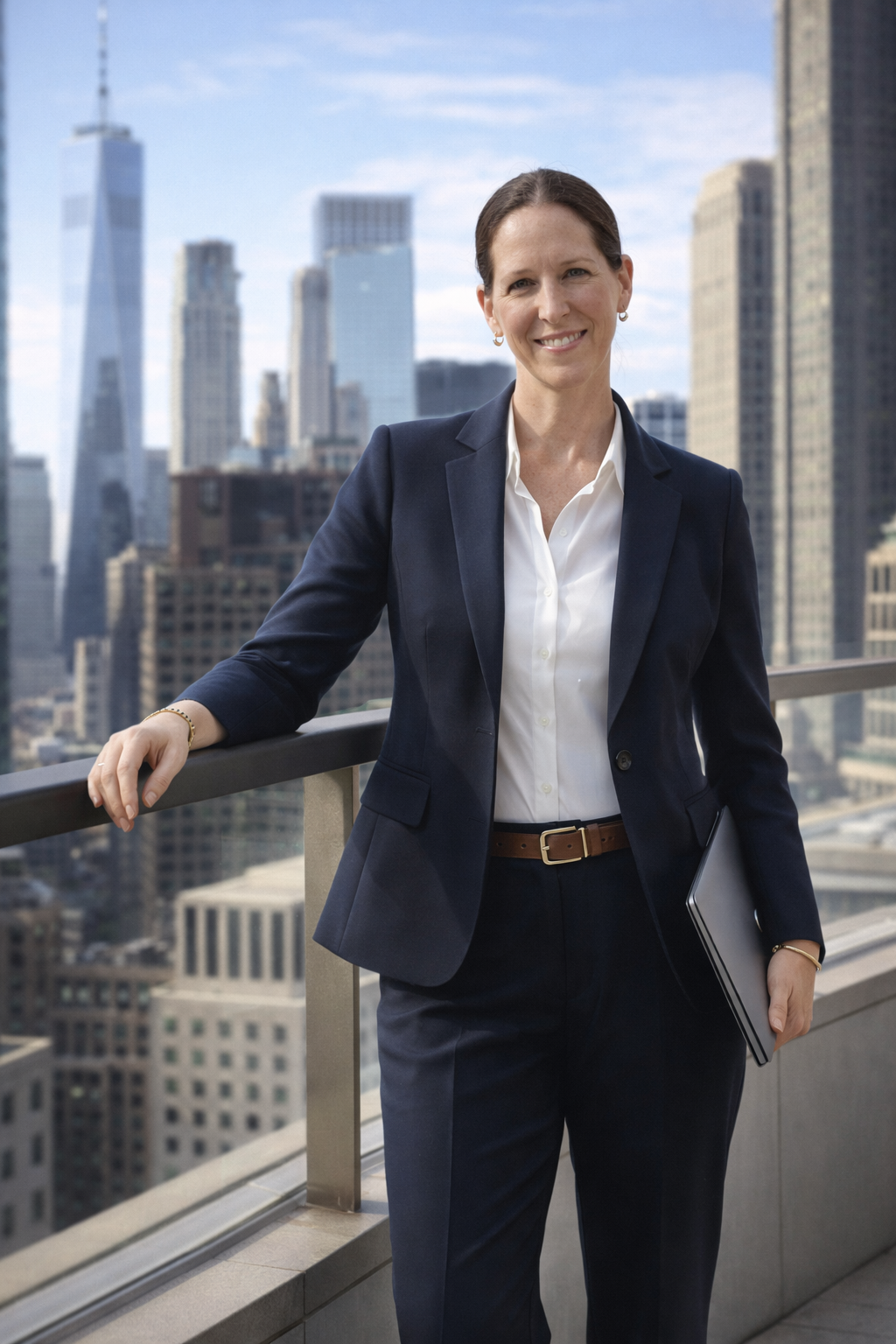 Chat GPT (Modell??) hat mich zuerst noch um ein Foto von mir gebeten - und könnte mit dem Ergebnis kaum falscher liegen. Ich hasse Blusen und Anzüge!