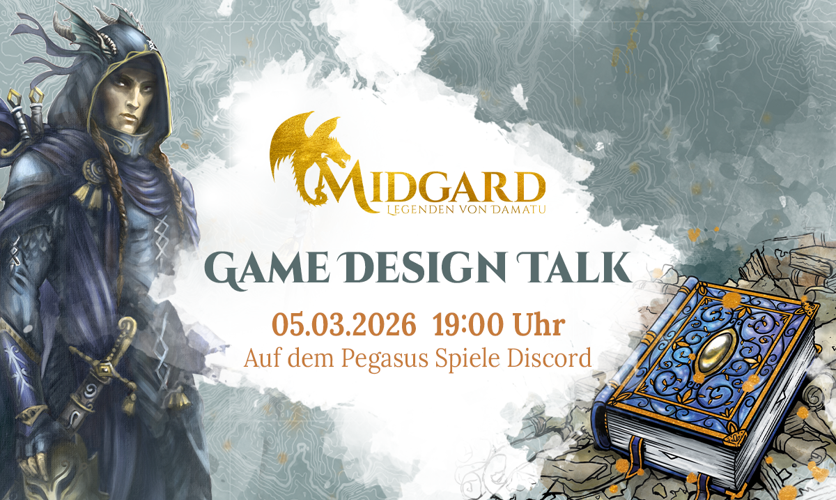 Hey zusammen! Ich darf mal wieder etwas ankündigen. 😁 Am 05.03.2026 findet ab 19 Uhr der nächste Game Design Talk zu Midgard – Legenden von Damatu auf dem Discord Server von @Pegasus Spiele statt. Wir möchten euch Einblicke in die letzte Phase der Regelentwicklung, entscheidende Änderungen und Erweiterungen der Regeln, die Zukunft des Playtest Guides sowie Kommendes geben. Und natürlich werden wir uns euren Fragen stellen. Weitere Details zum Programm werden folgen. Seid dabei, wir freuen uns! 💚