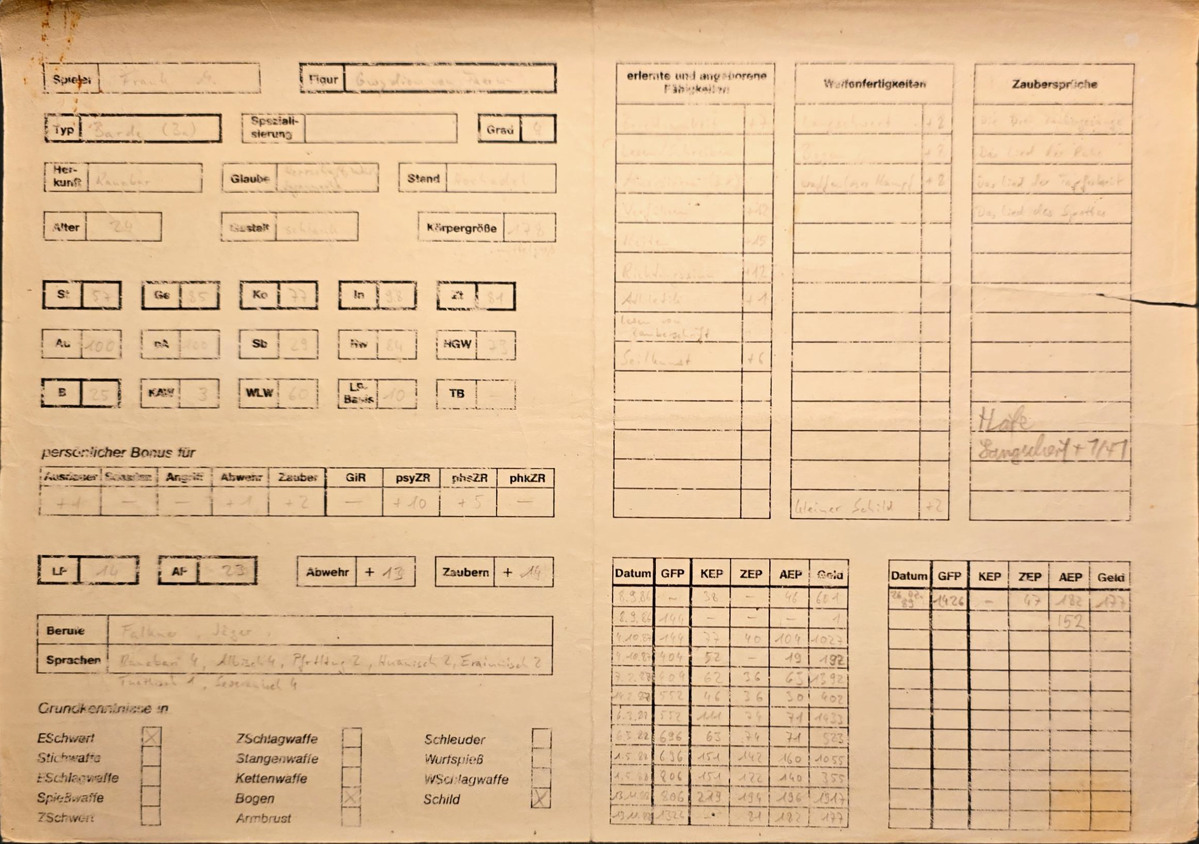 Ups, ganz schön spät ist es geworden... Zum Glück noch nicht zu spät, zu diesem denkwürdigen Jubiläum zu gratulieren - muss ich mich halt kurzfassen. 😅 Herzlichen Glückwunsch und meinen allergrößten Dank und Respekt, lieber H.-J.! 🥳 Meine MIDGARD-Begeisterung feiert in diesem Jahr sogar gleich zwei Jubiläen. Vor 40 Jahren habe ich nach vielen Runden D&D meine erste Bekanntschaft mit MIDGARD (M2) machen dürfen - und bin MIDGARD bis heute treu geblieben. Ziemlich vergilbt und kaum noch lesbar hat mein erster Figurenbogen die Jahrzehnte doch tatsächlich bis heute überdauert... Vor 25 Jahren - mit der Eröffnung des Forums - wurde MIDGARD dann digital, und das Forum ist seitdem meine erste Anlaufstelle für Inspiration und Austausch zu meinem liebsten Hobby. Anfangs nur als anonymer Leser, dann irgendwann als regelmäßig angemeldeter Nutzer (wenn auch sicherlich nicht einer der aktivsten 😉). Vielen Dank dafür! Ich freue mich auf viele weitere Jahre! 😊 Hawkwyn