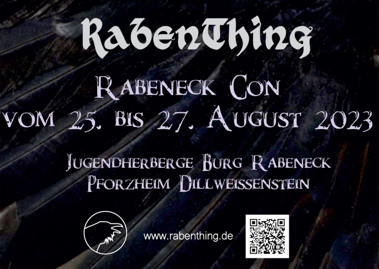 Wir vom Rabenthing veranstalten einen Pen & Paper Rollenspiel Übernachtungs- und Wohlfühl-Con auf der Burg Rabeneck im Nagoldtal. Der Con findet vom 24.08.2018 - 26.08.2018 in der Jugendherberge Dillweißenstein statt. Nähere Infos unter https://www.rabenthing.de/?page_id=126 Bis 31. Mai 2018 bekommt man noch Frühbucherrabatt. Wir freuen uns über jeden Midgärtler. Liebe Grüße, Ben und Jack