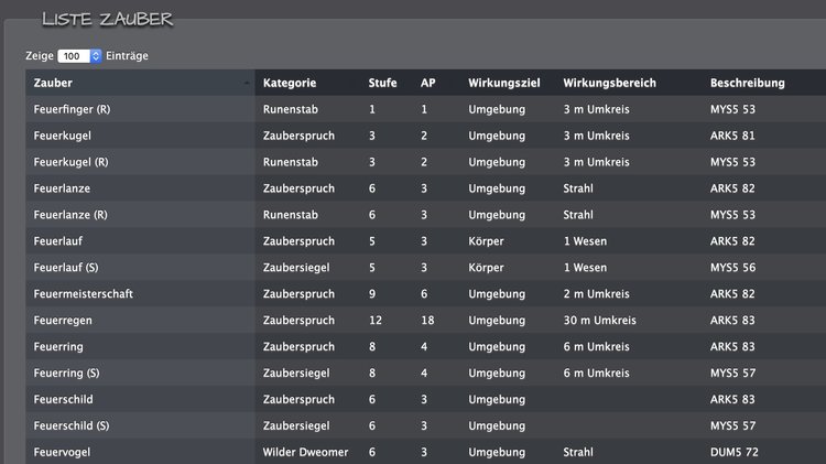 Falls zur Zeit gar nix (auser Spruchangaben AP, Zauberdauer...) drinsteht, sollte wenigstens noch Band & Seitenangabe mit dazu.