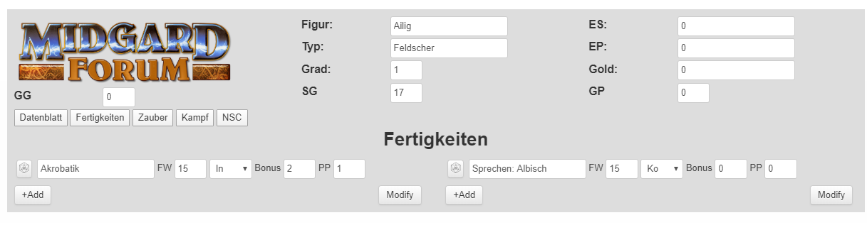 Aktuell mag/kann niemand ein Midgard-Charaktersheet für Roll20 basteln.