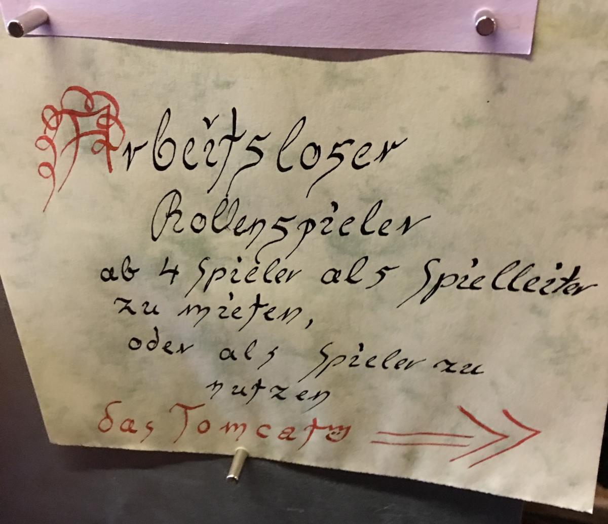 Ich habe mein Freitags Abend Abenteuer auch erst nach der Begrüssung und nachdem ich essen war ausgehängt. Es endete damit, dass ich noch einen siebten Spieler mit dazu nahm nachdem ich die Gruppe gefragt habe. Schließlich brauchen 7 Spieler auch ein wenig Bühnenplatz um ihre Rollen spielen zu können.