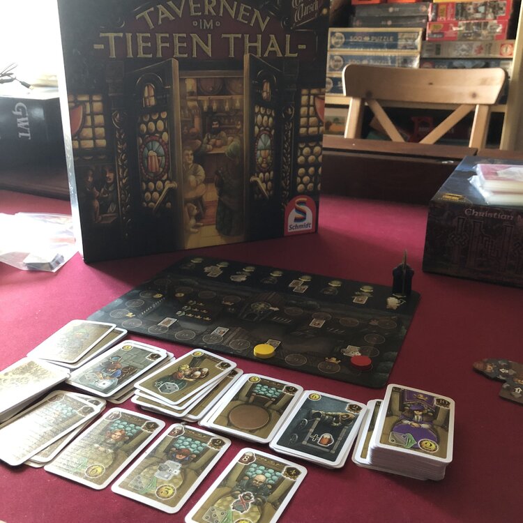 Die Tavernen im tiefen Thal habe ich heute testen können. Hat Spaß gemacht, allerdings befürchte ich, dass der wiederspielwert auf Dauer nicht sonderlich hoch ist.