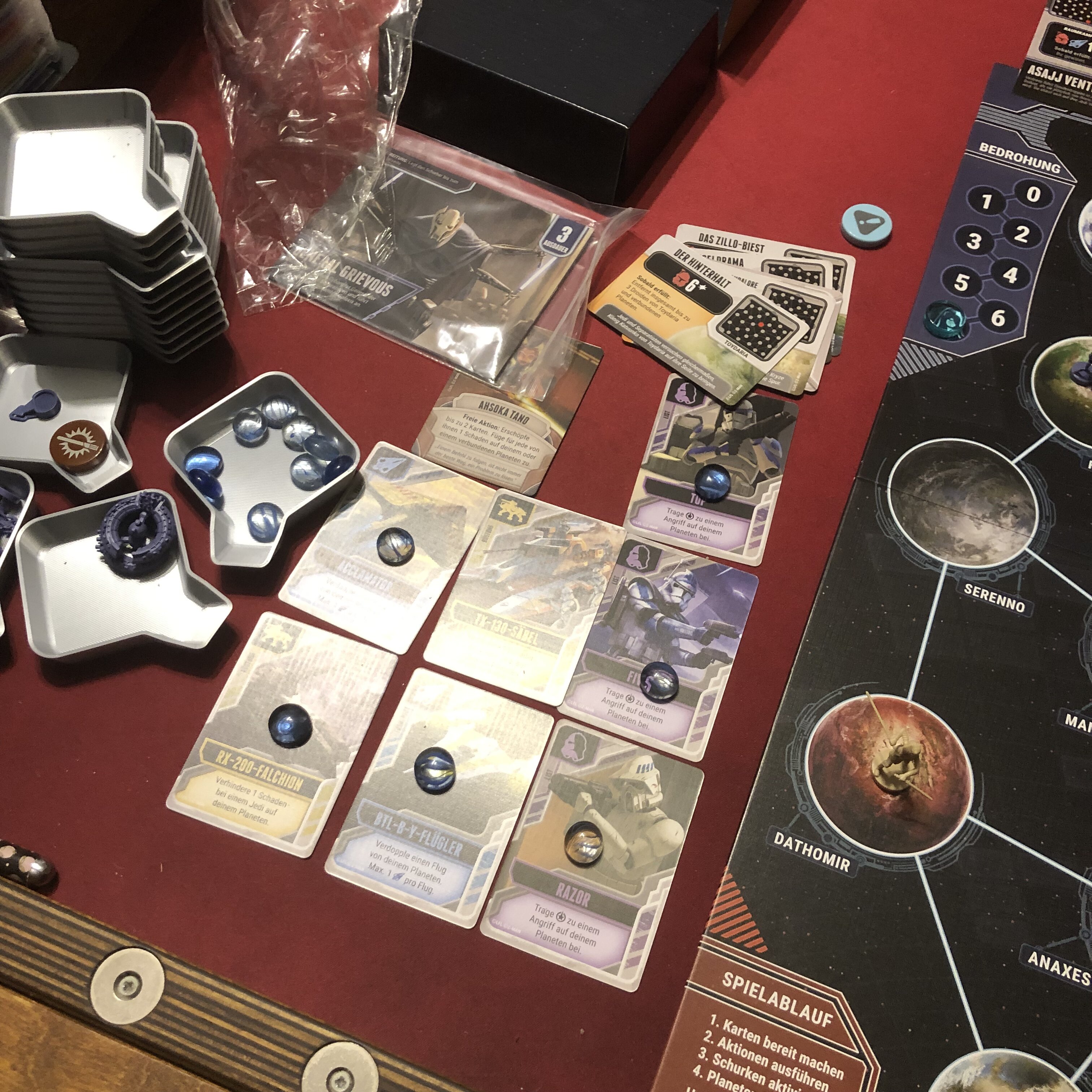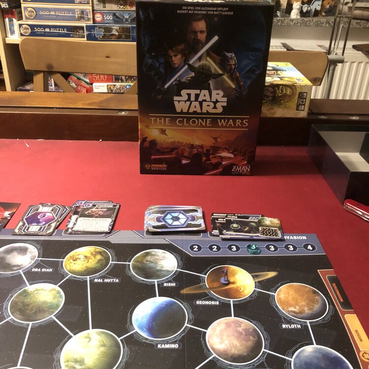 Star Wars: The Clone Wars haben wir gestern schon gespielt. Hat Spass gemacht! Ist ein Pandemie-System, dass ziemlich gut an das Star Wars Thema angepasst wurde.