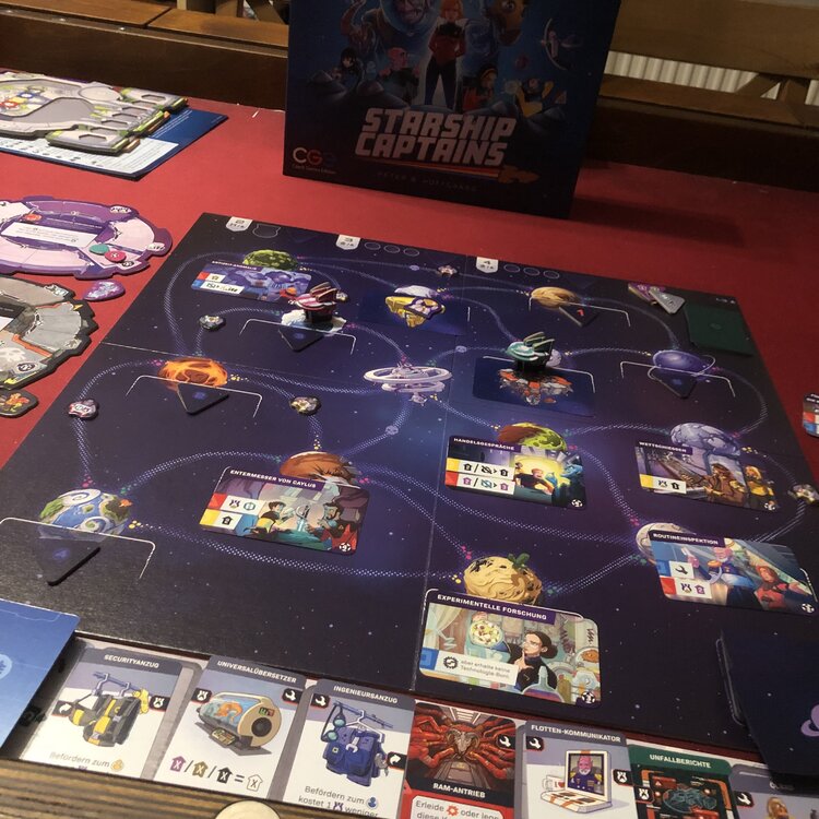 Neuer Tag, Neues Spiel. Starship Captains. Schaut humorig aus und ja, es hat viele Star Trek und ein paar Star Wars / StarGate Referenzen. Ist aber trotzdem ein Spiel auf Kennerspiel-Niveau. Mit ner Stunde Spielzeit für 2 Spieler (mit Regelerklärungen und Aufbau waren es 2,5 Stunden) ist es angenehm schnell gespielt.