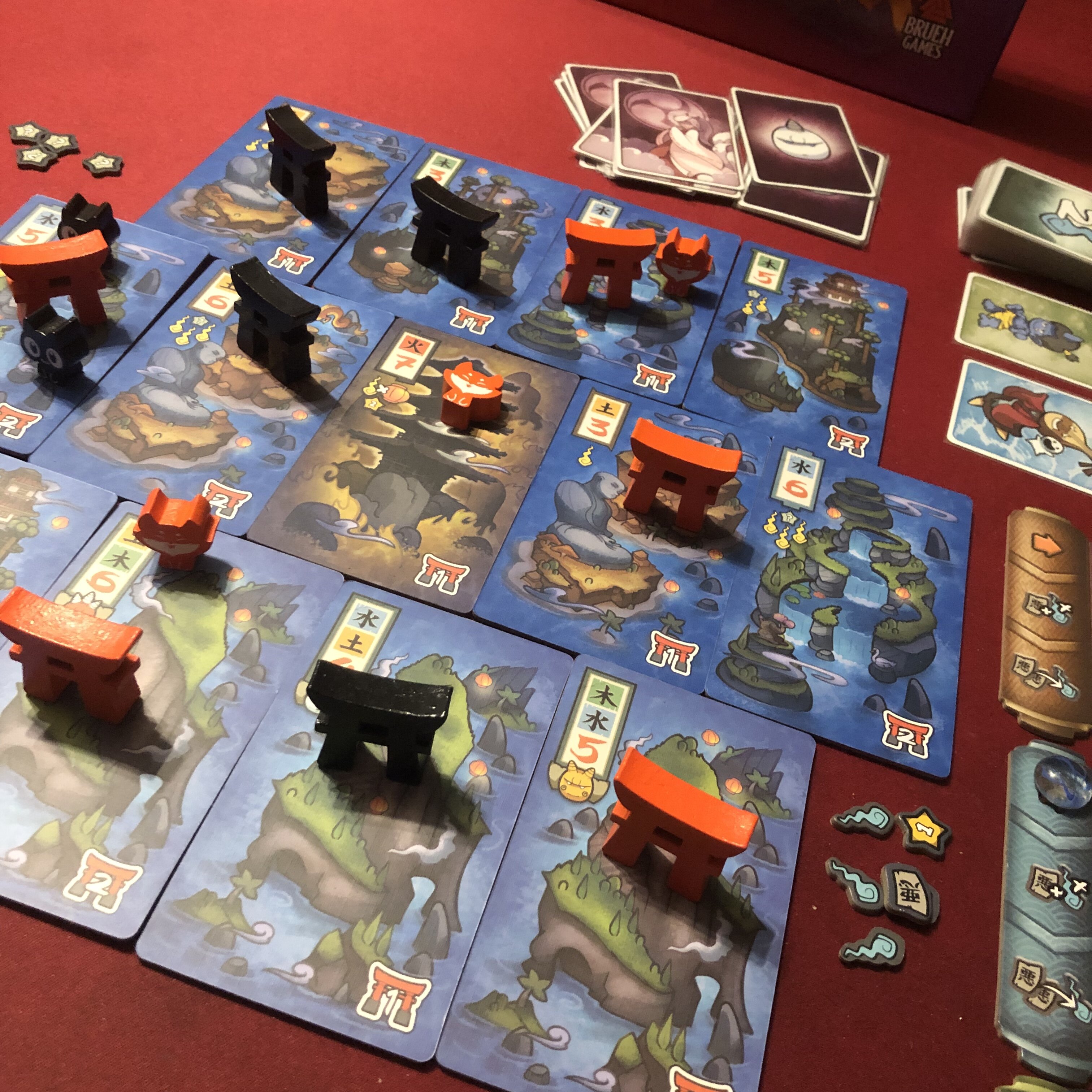 Night Parade of a Hundred Yokai. Von dem gleichen Designer wie Keep the Heroes out. Klasse Spiel! Gehobenes Familienspielniveau würde ich sagen. Die Regeln sind nicht kompliziert, es gibt aber viele Icons die man sich merken muss. Sieht auch noch absolut hübsch aus.