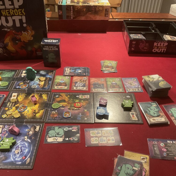 Neuer Kickstarter kam an. Keep the Heroes out. Es geht darum als Monster die Helden aus dem Dungeon zu werfen. Macht Laune. Ist asymmetrisch und kooperativ. Außerdem schaut es einfach nur 😍 aus. Ist nich sehr komplex, hat einfache Regeln. Da sich jeder Monsterclan anders spielt, liegt der Wiederspielreiz recht hoch.