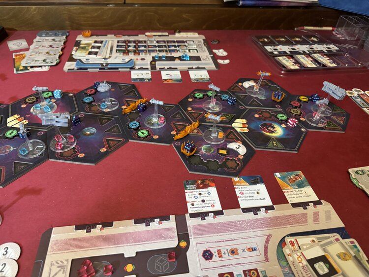 Der Aufbau eines Szenarios kann durchaus ne Stunde dauern. Die Regeln sind zwar gut geschrieben und es gibt ein Tutorial, aber es sind noch immer echt viel.