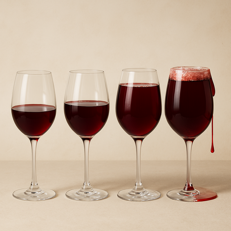 Erstelle mir ein Bild..." - eines Weinglases - eines vollen Weinglases - eines randvollen Weinglases - eines übervollen Weinglases