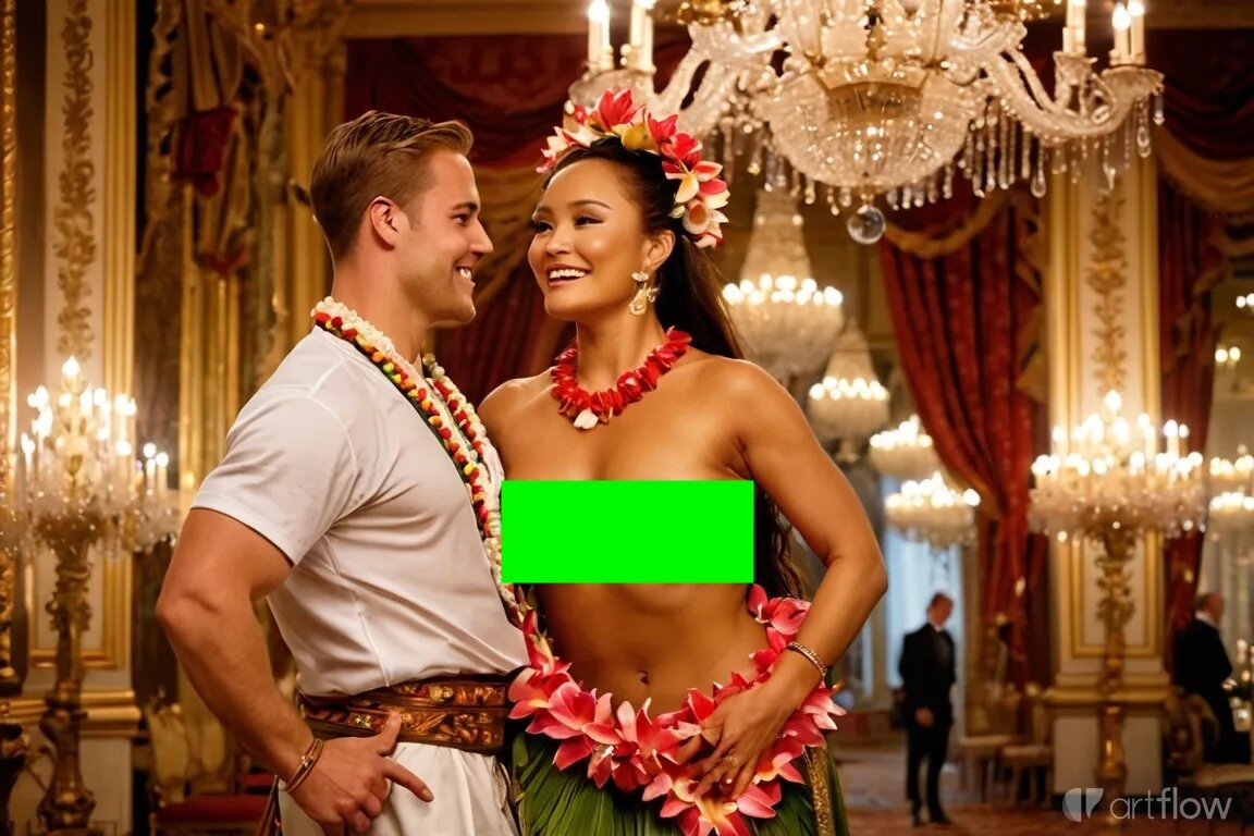Mit einem BH aus Blütenblättern wäre das Bild ok, aber ob die Ki das hinbekommt ???