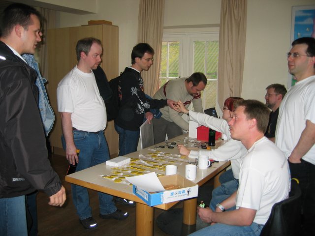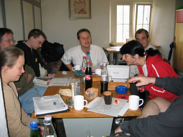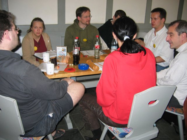 (1) Nach dem Abendessen. Rainer verliest die Turniergruppen.