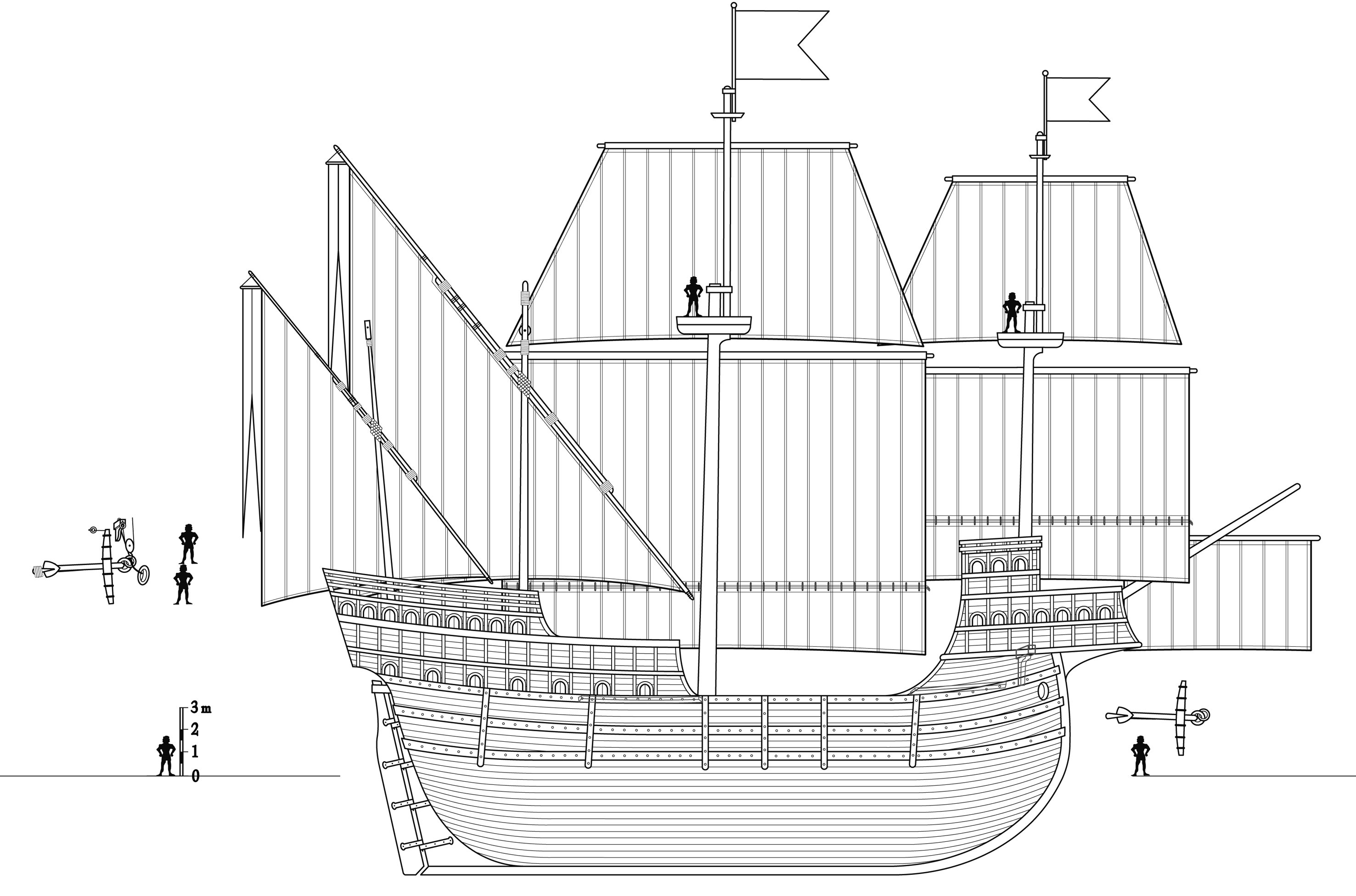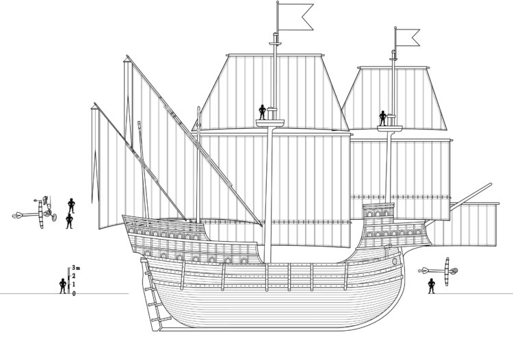 Obwohl haben Karavellen ein längen/Breitenverhältnis von 4-5:1 - bei dir ist es eher 3:1 - das sollte in einem deutlich langsameren Schiff resultieren.